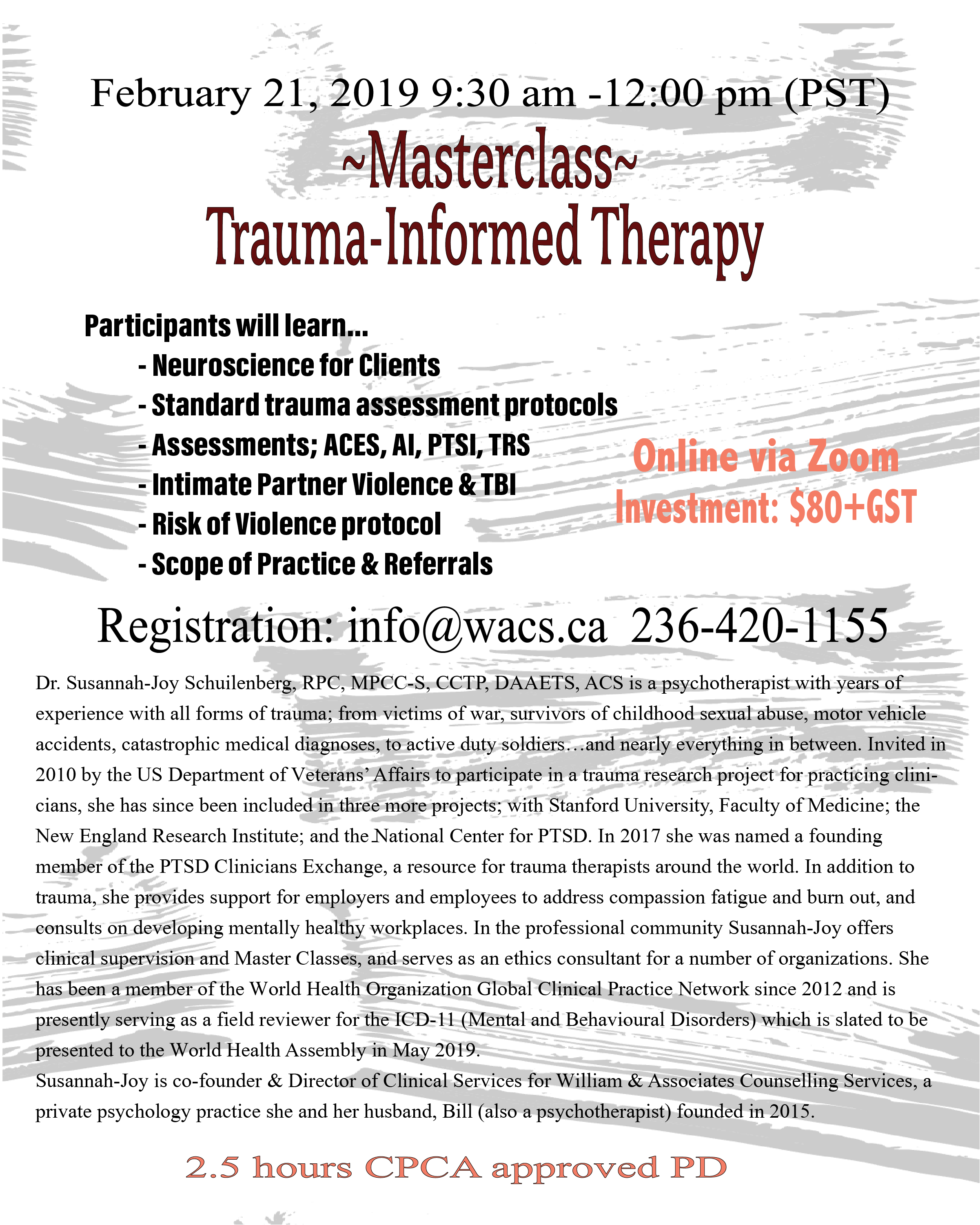 To register email info@wacs.ca